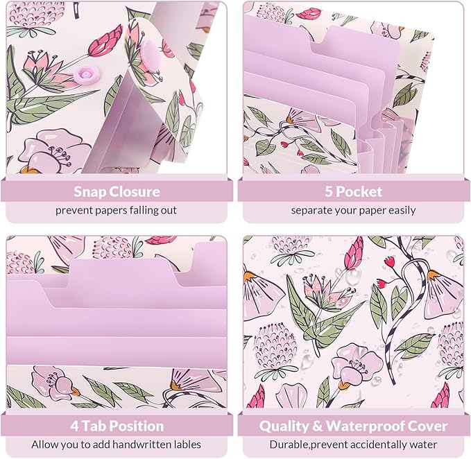 - Quick Access:Each folder features 5 expanding pockets with side openings for easy insertion and removal of documents. Includes 8 writable index labels to keep everything clearly categorized.