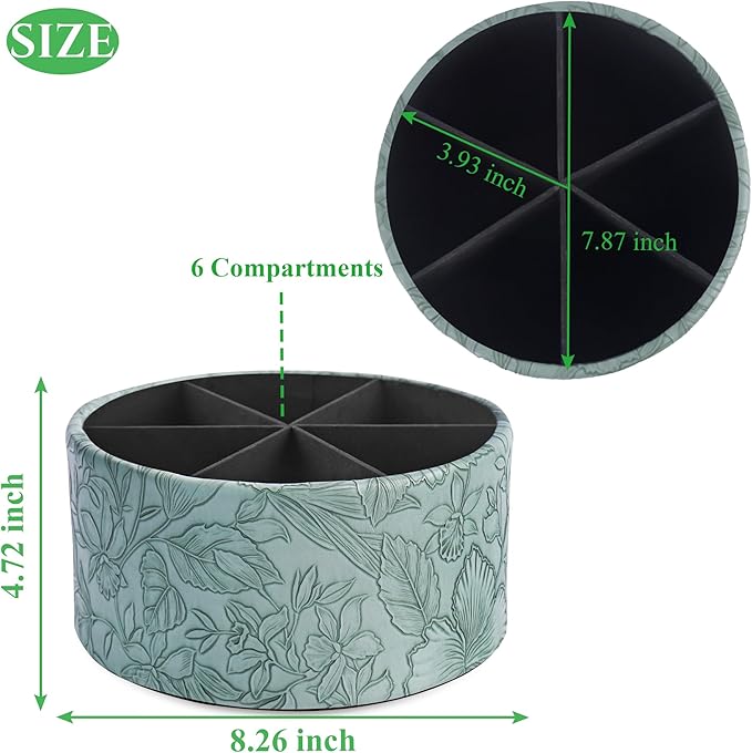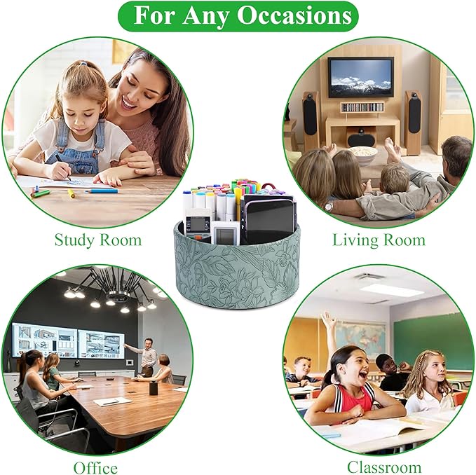 Hennaja Remote Control Holder, 360°Spinning PU Leather Desk TV Remote Caddy,Desk Storage Box Room Accessories for Controller, Media,Mail,Calculator, Mobile Phone,Pencil(1-Carved Green2)