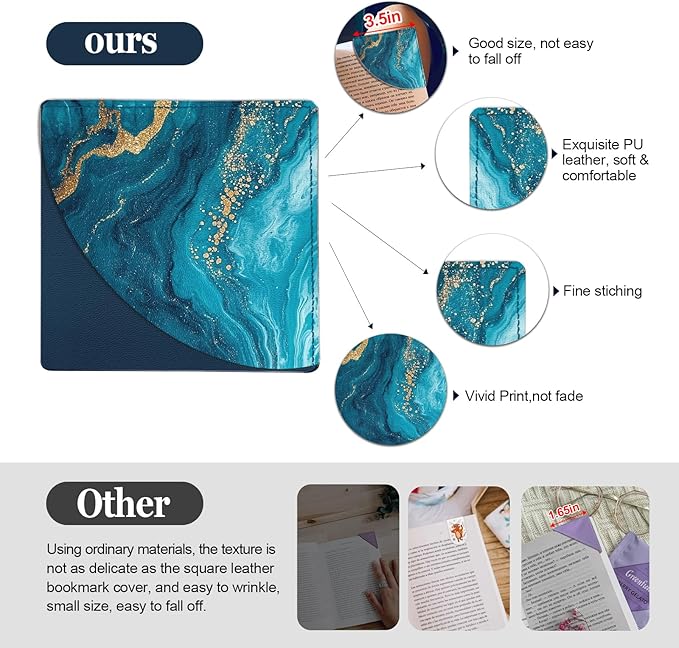 - Water Resistant and Long Lasting:Corner bookmarks are made of soft leather, waterproof,sturdy and lightweight, not easy to fade or break, not easy to break or deform, smooth surface and comfortable to touch, and does not hurt the book. It can protect the corners of the book,and can be applied for a long time. The clever corner design that allows them to be more securely attached to the book,They can hold one page or multiple pages with ease,not easy to fall off
