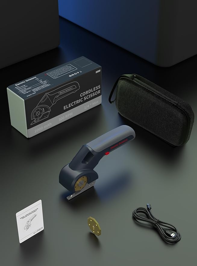 - FULL STARTER KIT INCLUDED: Your kit includes: cordless electric scissors, storge box, spare blade, USB charging cable, and user manual—everything you need in a complete box cutter set. With a cutting depth of 0.25 inches, this electric cardboard cutter slices through cardboard, leather, carpet, plastic and more