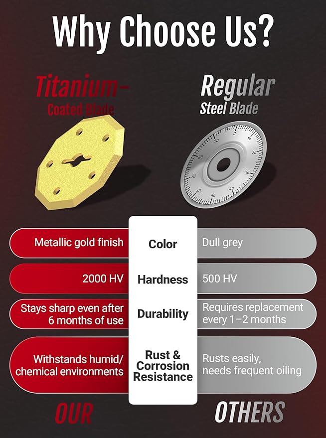 - TITANIUM-COATED BLADE: Tired of box cutter blades that dull after just a few uses? Our electric scissors are equipped with a titanium-coated SKS7 blade, a premium high-carbon alloy steel that delivers razor-sharp precision even after 100,000+ continuous cuts.Unlike ordinary blades that wear down quickly, SKS7 offers: higher hardness, superior wear resistance and extended cutting life — perfect for high-frequency, professional use