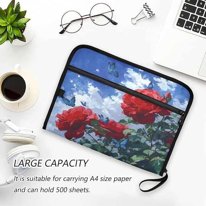 Rose and Blue Sky Expanding File Organizer with 13 Pockets Accordion File Folders with Labels,Portable Document Paper Bill Receipt Organizer,Home College School Office Supplies, Letter Size