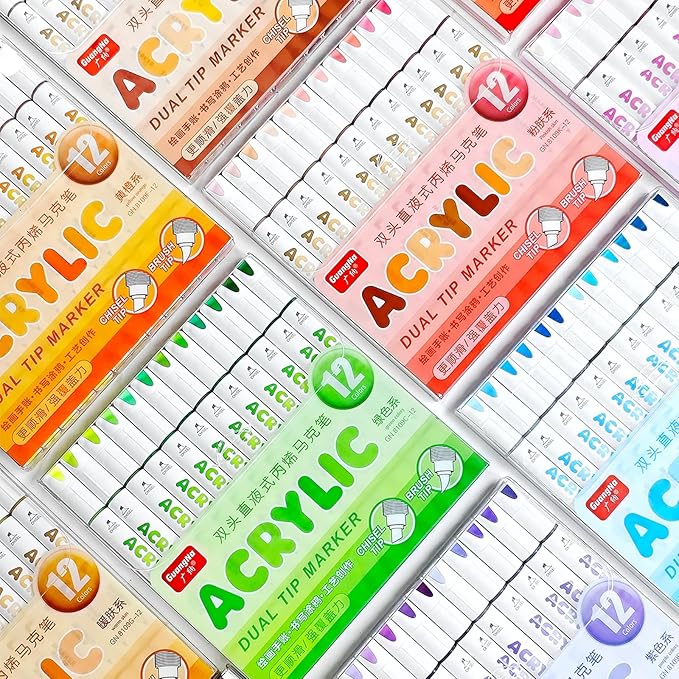 kander 12 Colors Dual Tip Acrylic Paint Markers, Green Color — Extra Fine & Soft Brush Pen Set with Direct Ink Flow for Sketching, Detailing, Coloring on Wood, Canvas, Rock, Glass, DIY Crafts