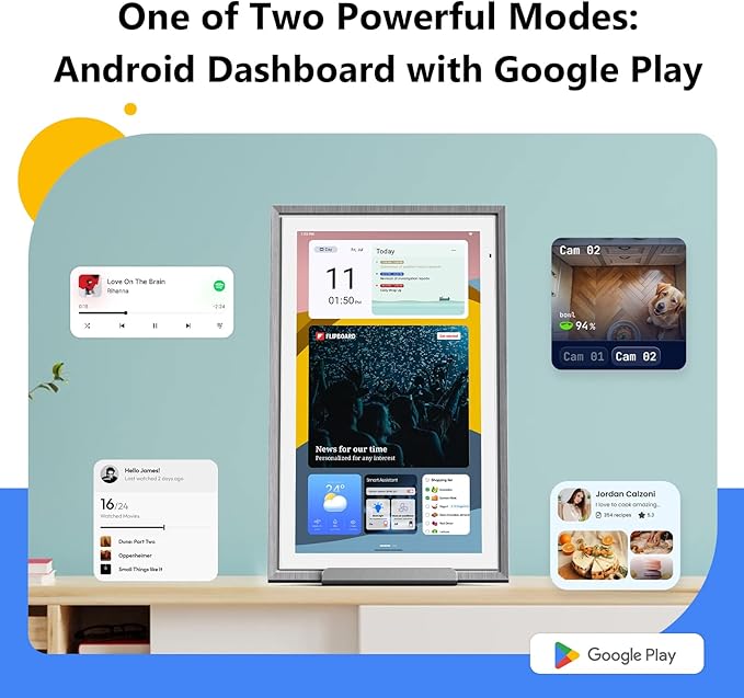 - HD Touchscreen & Smart Memory Frame: Enjoy a vivid HD touchscreen with Incell + AG anti-glare tech for glare-free viewing; elegant wooden frame supports wall or desktop use; auto portrait/landscape rotation; energy-saving sleep mode; transforms into a smart photo frame with Google Photos or direct uploads—no subscriptions needed.