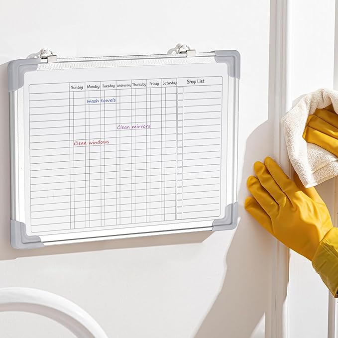 - Robust Construction: constructed with about 16×12 inch double-sided magnetic dry-erase surface, this dry erases chore chart offers a generous writing area fit for multiple users; Its sturdy aluminum frame stands the test of time, while the chore chart's innovative build is both impact-resistant and scratch-resistant