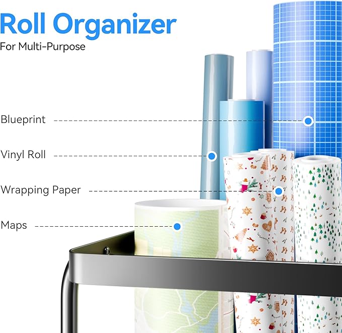 Gift Wrap Storage - Blueprint Holder with Wheels,12 Slots Wrapping Paper Organizer Storage, Sturdy Cart for Organizing Construction Plans, Artwork,Map,Posters in Home/Office/School