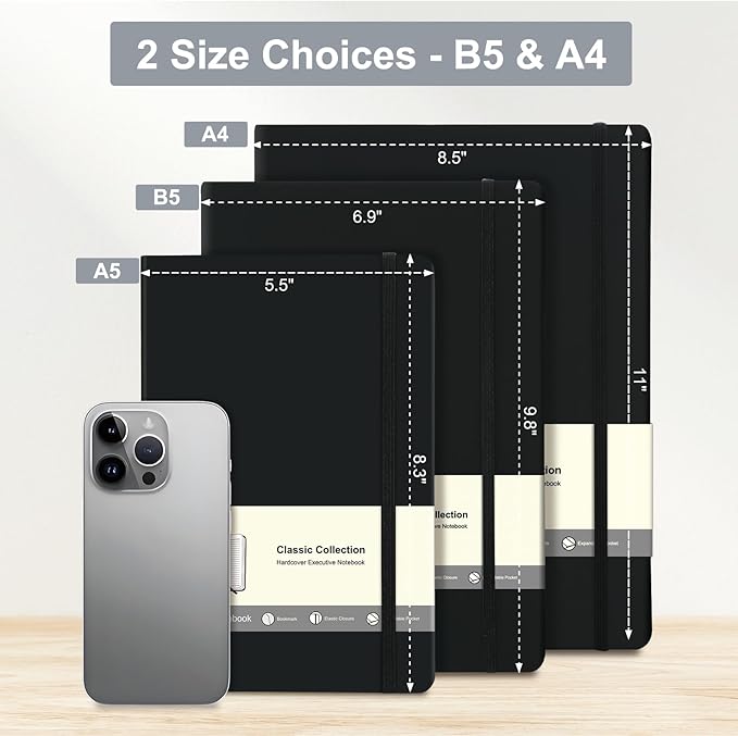 - 【The Ideal Size: More Space, No Bulk】 The portable 6.9"x9.8" B5 format fits in your bag while offering nearly 40% more area than A5—spacious writing without the bulk of larger notebooks.