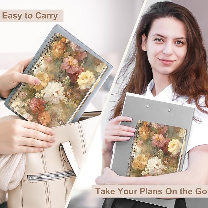 - [INTUITIVE FEATURES] - Designed with convenience in mind, our 2026 weekly planner includes a sturdy elastic band for secure closure, color-coded monthly tabs for quick access, and a transparent double-sided pocket for storing notes or receipts. Every monthly spread also features an inspiring quote to keep your motivation high and your plans on point.