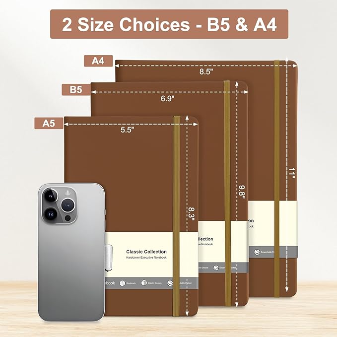 - 【The Ideal Size: More Space, No Bulk】 The portable 6.9"x9.8" B5 format fits in your bag while offering nearly 40% more area than A5—spacious writing without the bulk of larger notebooks.