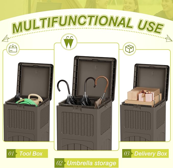 - All-Weather Durability: Constructed from heavy-duty resin, this garbage bin is waterproof, UV-resistant, and warp-proof, ensuring it won't fade, crack, or deform under sun, rain, or snow. Featuring our newly upgraded reinforced lid for enhanced durability, it's perfectly designed for year-round outdoor use!