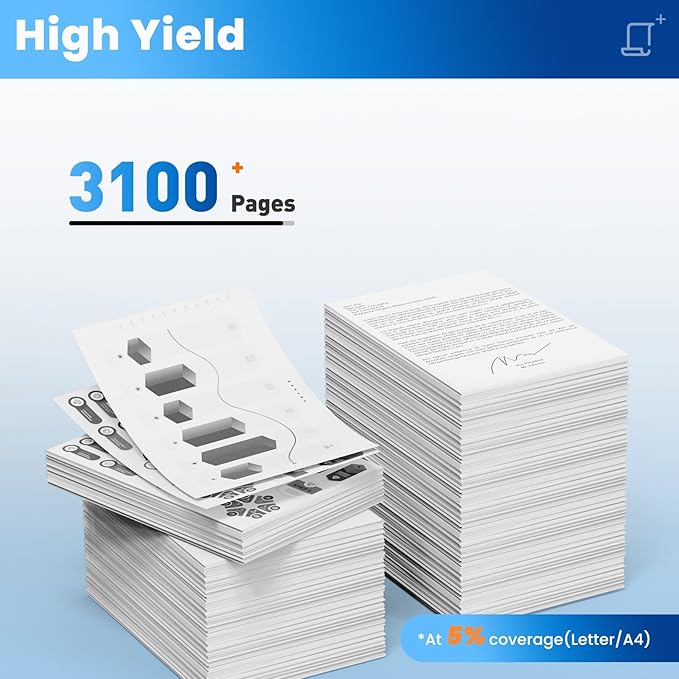 - 26A Toner Cartridge Yield (approx.): 26A black toner cartridge high yield up to 3,100 pages per 26A black toner cartridge (Letter/A4, at 5% Coverage).