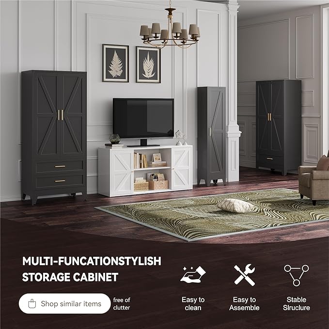 - Farmhouse-Style Aesthetic: The door panel of the metal wardrobe closet is designed with a charming farmhouse aesthetic, adding a touch of rustic elegance to your space. Closet organizers and storage classic design complements a variety of decor styles, making it a versatile choice for any room