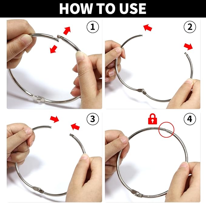- Versatile and Flexible Applications: Loose leaf binder rings are ideal for organizing index cards, notes, files, keys, photo albums, jewelry, and DIY projects (such as curtain rings, keychains, and more). Perfect for use at home, office, school, and crafting.