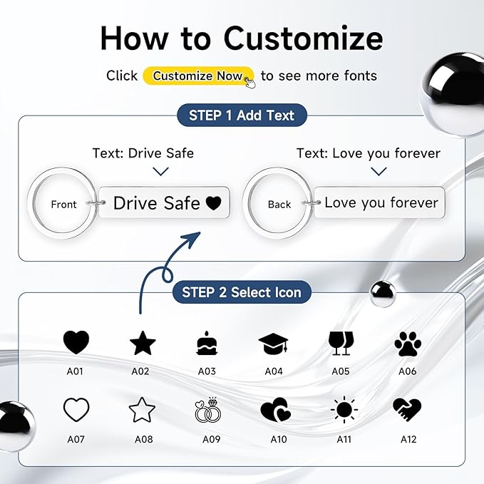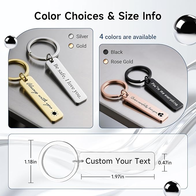 - CDBUY Personalized Keychain: Click "Customize Now" to engrave names, icons, dates, phone numbers, or special messages on one or both sides. Practical for daily use—and helpful for returning lost keys through your contact information
