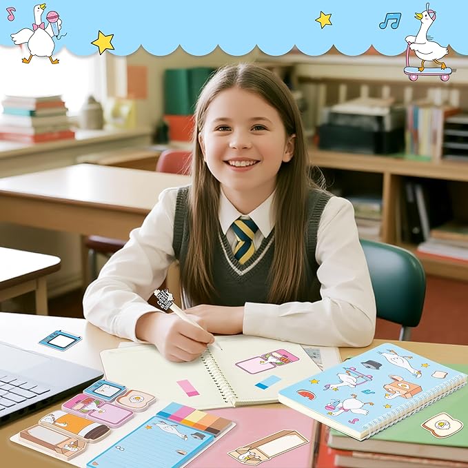 - Funny Goose Set: Funny goose stationery gift set includes 2 funny goose A5 notebooks (50 sheets of each style, 100 pages), 1 funny goose sticky notes (550 pages in total) and 1 funny goose ballpoint pen in random colors, which can be used to meet your daily writing needs!