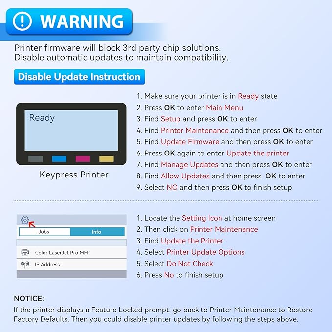 - Compatibility Alert: 148A toner cartridge is NOT Compatible for Suffix with Letter "e" such as: Pro MFP 4101fdwe/ 4101dwe/ 4101fdne, Pro 4001dwe/ 4001dne/ 4001ne. Please confirm your printer model before purchase