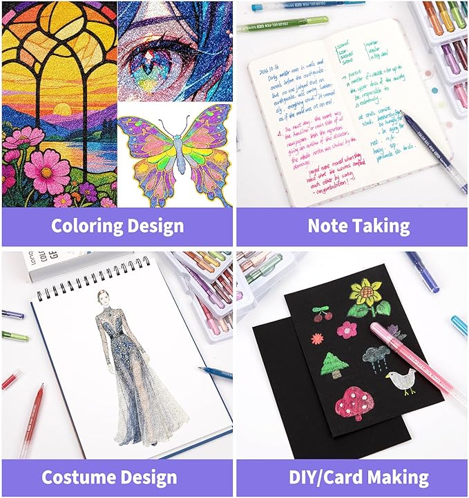 - 【Glitter-Infused Magic】Glitter gel pens feature specially formulated inks with suspended glitter particles that create multidimensional shine, making every stroke dance with light. Unleash radiance that leaps off the page—because your creativity deserves to sparkle without limits.
