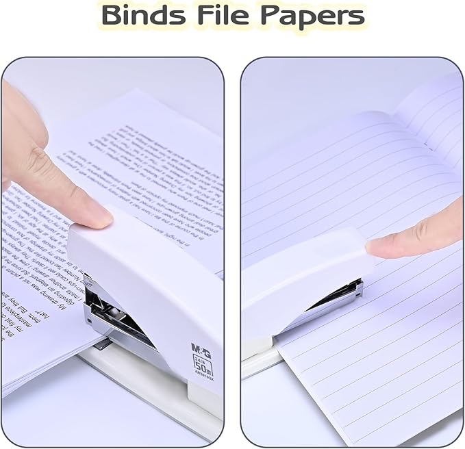 - Labor-saving:M&G desk stapler features an ergonomic leverage principle that makes it easy to use with little effort, and can be operated with one hand, with one finger easily pressing the staple to bind