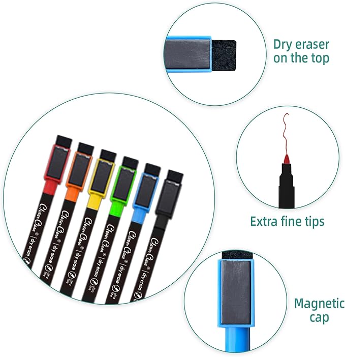 - Fine-point markers included – We also provide 6 extra-fine point markers with different colors, so you may use your own color coding. These magnetic markers stay conveniently attached to your fridge.