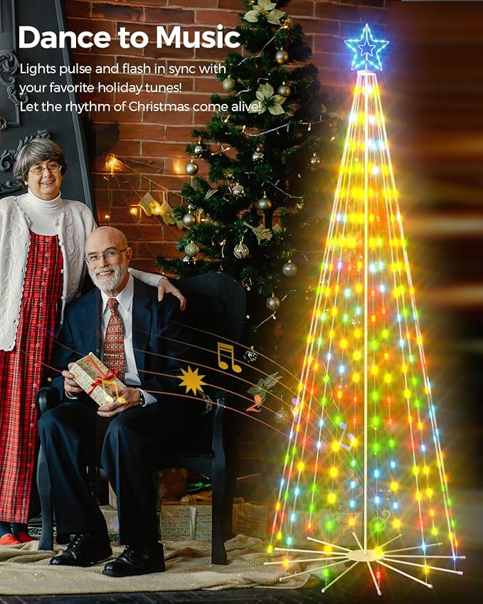 - Dynamic Music Sync Light Shows: Sync via playlists, live microphone sound capture, or controller input – LED Christmas tree lights create mesmerizing real-time light performances for unforgettable parties
