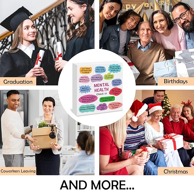 - Mental Health Office Decor: It is a good choice as Birthday gift, Wedding gift, Valentine's Day gift, Christmas gift, New Year gift, Thanksgiving gift, cancer awareness survivor gift, surgery keepsake gift, self-care gift, divorce gifts, adult gifts, galentines gifts, anniversary gifts, mental health gift for women and men or just because. Dad or mom to daughter or sonβs graduation gift, aunt or uncle to niece back to school or coming of age gift