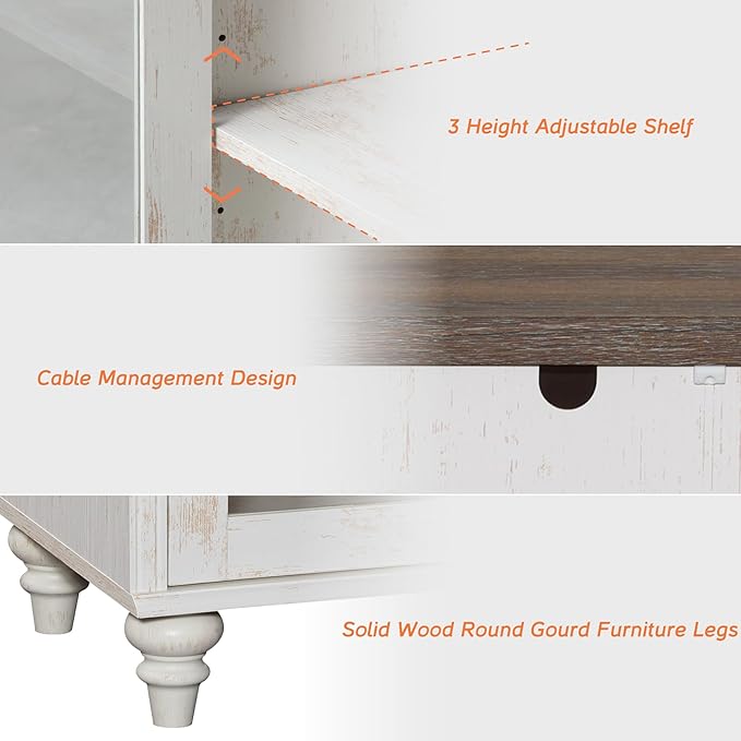 - 【Premium Material& Sturdy Structure】The rustic white bookcase with doors crafted from optimal MDF, built to withstand the challenges of long-term use. The solid wood gourd legs greatly increases stability and weight capacity, the thickened tabletop can easily hold up to 150 lbs.The smooth waterproof surface of the bookcases is convenient to clean with a soft damp cloth to facilitate your daily cleaning work.