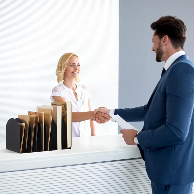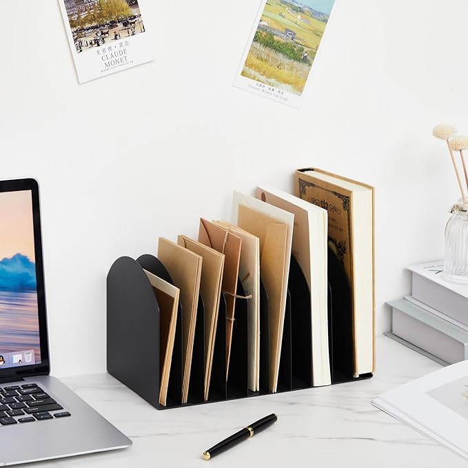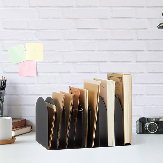 Suzile Metal Desktop File Organizer, 15 Compartments, Vertical File Sorter, Black, 10.63" L x 5.79" W x 5.41" H, Office, Reception Areas, Workspace(style 3)