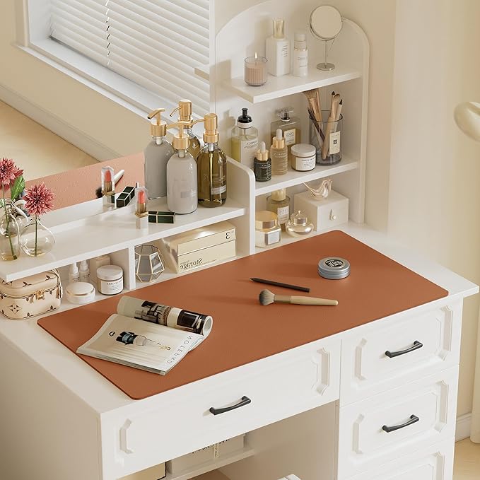 Aothia Faux Leather Desk Mat – Large Mouse Pad, Non-Slip PU Leather Blotter, Waterproof Writing Surface for Office and Home (Brown, 47.2" x 23.6")