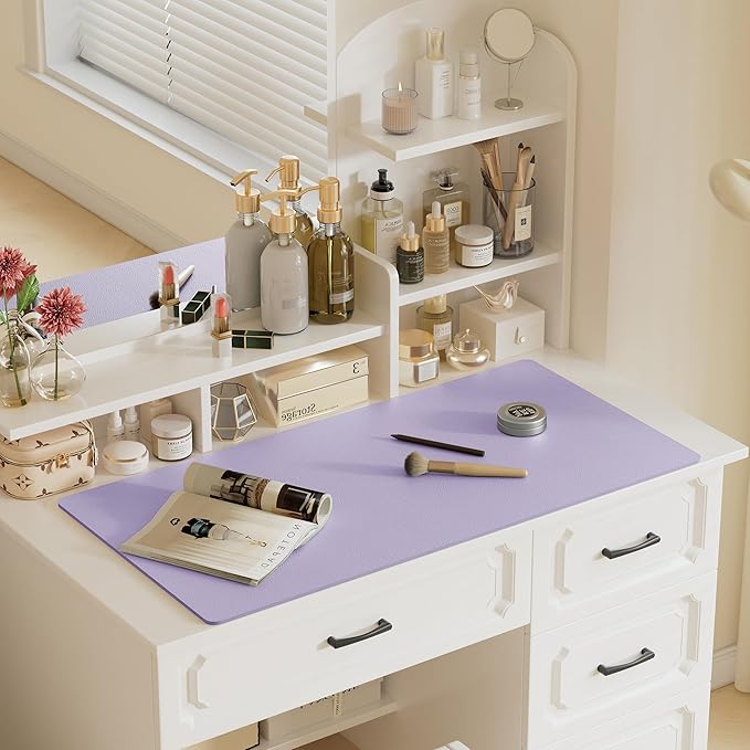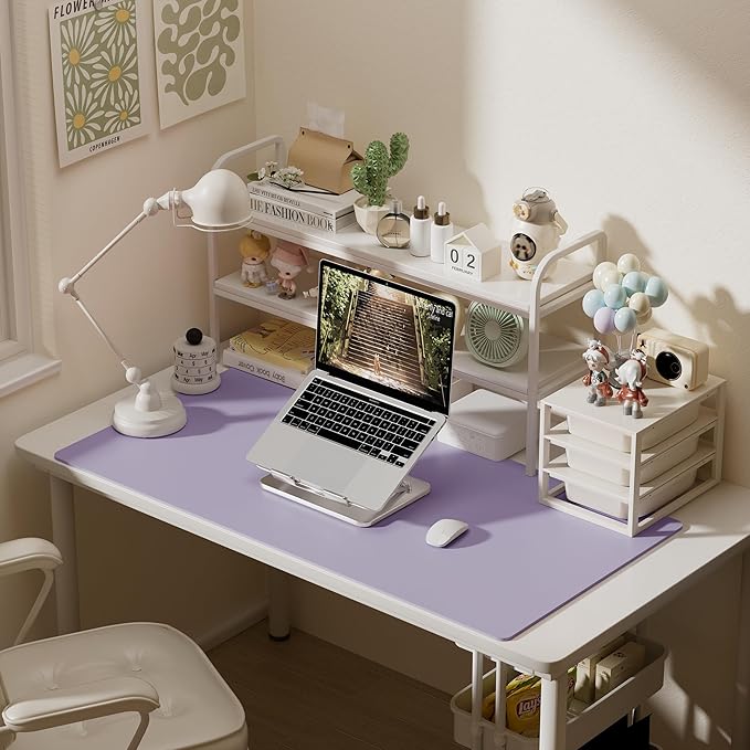 Aothia Faux Leather Desk Mat – Large Mouse Pad, Non-Slip PU Leather Blotter, Waterproof Writing Surface for Office and Home (Lavender, 47.2" x 23.6")