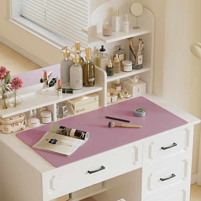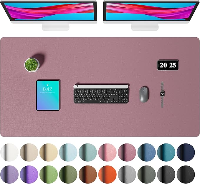 Aothia Faux Leather Desk Mat – Large Mouse Pad, Non-Slip PU Leather Blotter, Waterproof Writing Surface for Office and Home (Dark Pink, 47.2" x 23.6")