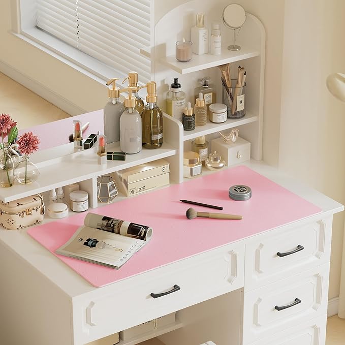 Aothia Faux Leather Desk Mat – Large Mouse Pad, Non-Slip PU Leather Blotter, Waterproof Writing Surface for Office and Home (Fairy Pink, 47.2" x 23.6")