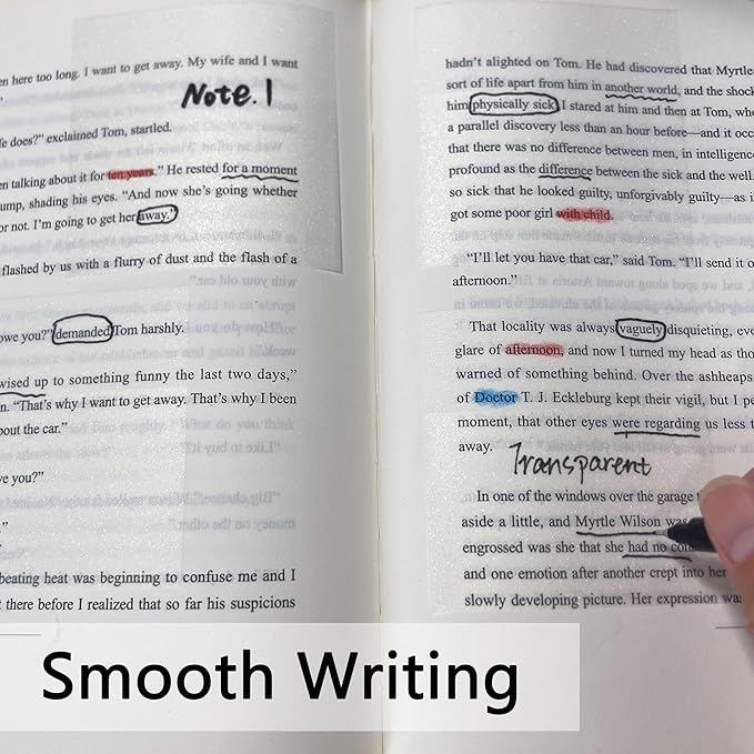 - 【Proper Adhesion】Transparent sticky notes with a good adhesion, and can not only be easily removed and repositioned, but the waterproof sticky sheet doesn't leave any traces of glue, no damage book pages, perfect for book lovers.