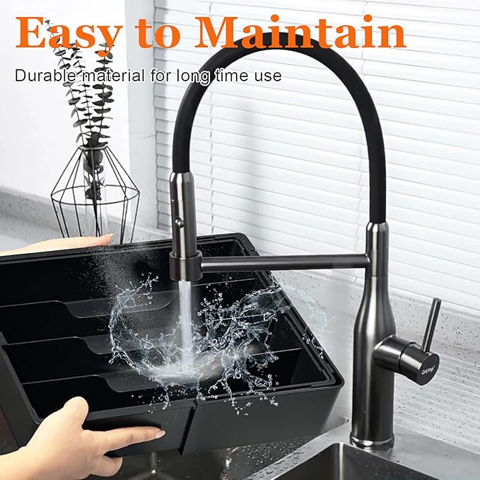 - Durable & Safe Material: Crafted from food-safe ABS plastic material, this silverware drawer organizer tray is BPA-free, shatter-resistant, waterproof, and built to last. Our drawer divider's smooth edges protect utensils from scratches, while the sturdy construction withstands daily use—making it a reliable drawer utensil organizer for years to come