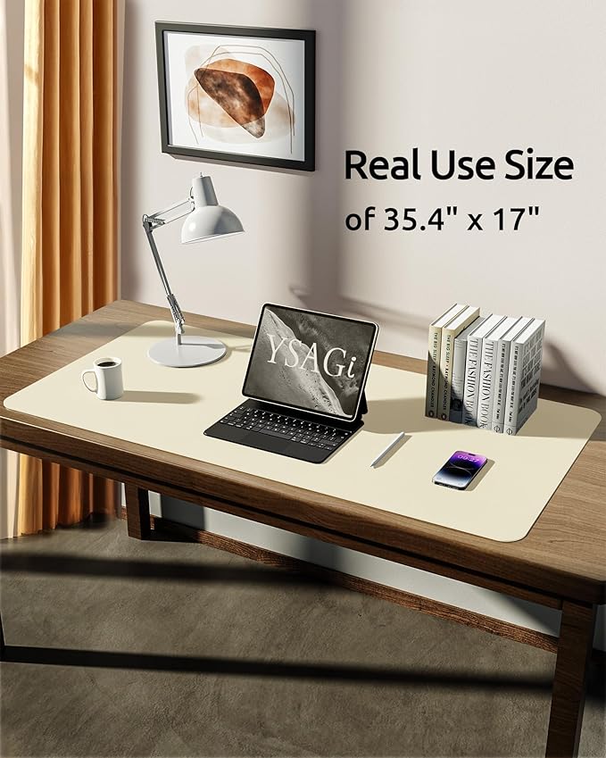 YSAGi Leather Desk Protector, Office Mat, Large Mouse Mat, Non-Slip PU Leather Blotter, Laptop Desk, Waterproof Writing Pad for Office and Home (Cream, 35.4" x 17")