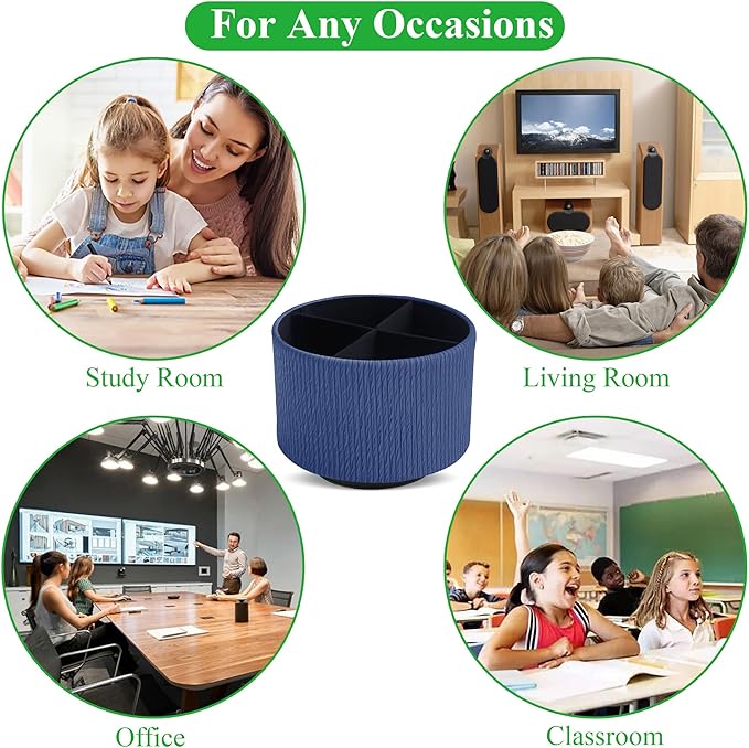 - ✎360° Revolving Design: You can freely rotate the pen holder steadily left and right,unique spinning base design allows easy access to items from any directions.The non-slip pads on the bottom keep it stay in place when rotating.