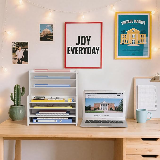 - 7-Tier Storage Organizer: This amazing desk organizer features 7 versatile tiers (both slanted & flat) to hold folders, mail, documents, notebooks, and office supplies, providing incredible storage and helping you achieve desk organization and a clutter-free workspace