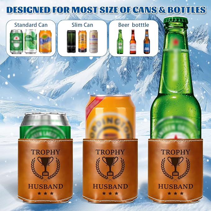 - 【Christmas Gifts for Men Who Is An Awesome Husband】Struggling to find the perfect Christmas gift for husband? This faux-leather can cooler solves your problem! Great for husband, grandpa, father-in-law, uncles, or brothers, beer-loving buddies,it reduces the chill from icy cans, making it comfortable to hold,preventing "freeze shock" on hands. A must-have for beer or soda lovers, it’s a small gift with big impact—perfect for secret Santa gifts or family gifts during the holidays!