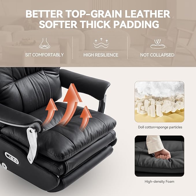 Dual Motor Electric Executive Office Chair with Foot Rest, Comfy Reclining Office Chair with Massage, Big and Tall Heavy Duty Ergonomic Home Office Desk Chairs,Sustainable Leather 400lbs, Black