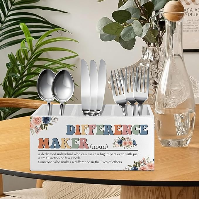 Difference Maker Gift, Office Decor for Women, Pen Pencil Holder Organizer for Desk Accessories, Appreciation Thank You Gifts for Teachers Boss Leader Coworkers Wooden Box Sign