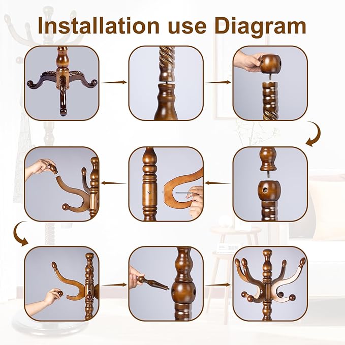 - EFFORTLESS AND QUICK ASSEMBLY: The coat rack comes together effortlessly in mere minutes. Simply tighten the frame poles and hooks with the threaded inserts, and your coat rack is ready to use. No complicated tools required. Save time and effort to enjoy a convenient lifestyle and effortlessly create a stylish home of your own.