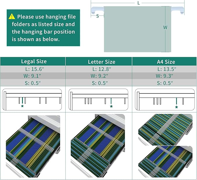 - Abundant Storage Space: The top drawer contains a removable pencil tray, and the bottom drawer features a removable hanging file bar that accommodates legal and A4 size documents. Guaranteed to keep you organized