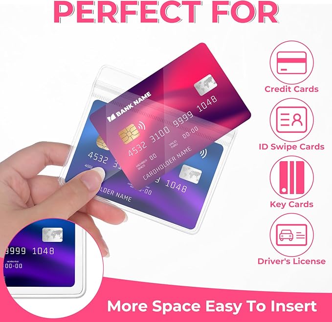 - 【Waterproof and Dustproof】Convenient to open and close with the convenient resealable zipper seals, this waterproof and dust-proof ID holder is nice for keeping your important paper ID card or card dry, clean, and safe; In addition, you can remove it from the PVC sleeve cover if desired