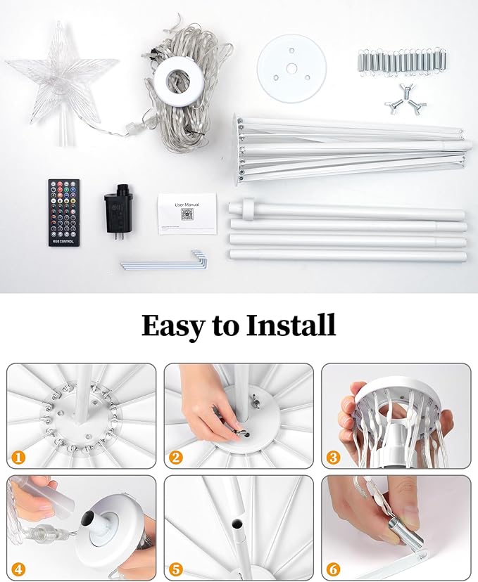 - Music Sync Feature: The outside Christmas tree is equipped with a built-in microphone (within the white IR receiver) and supports app-based audio control, syncing its dazzling lights to your music's rhythm. This creates an immersive audio-visual experience that enhances parties and gatherings, turns your space into a captivating entertainment zone—nice for Xmas carols or dance tunes. Notes: For the best music sync performance, we recommend using the APP for more precise and responsive control