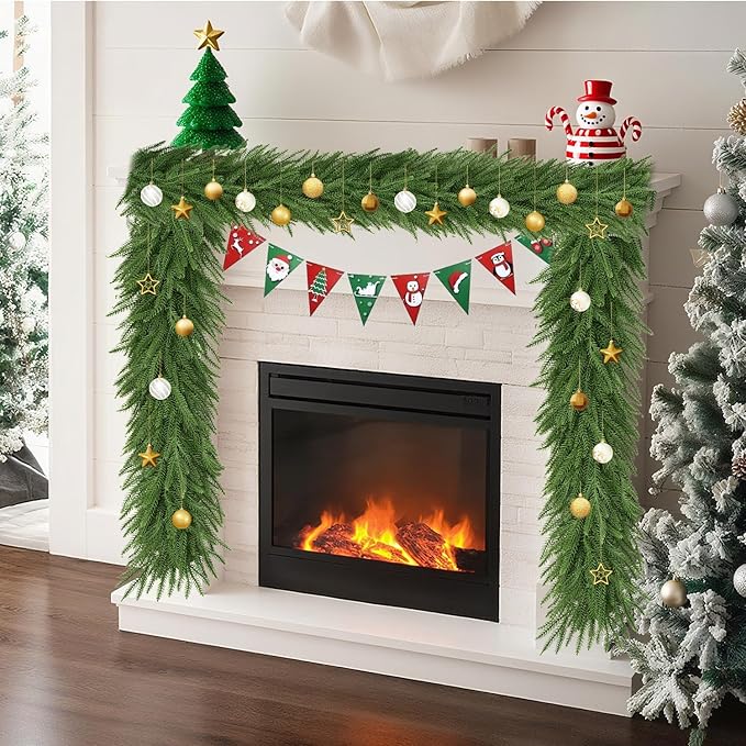 - 【Easy to Shape】 Faux greenery garland is flexible and fluff-able and able to be shaped exactly the way you want it. sturdy yet flexible, making them easy to drape or shape to fit any space.outdoor christmas garland needs to shaped and fluffed, but looks very full and natural after a just little fussing, The wires bend easily and stay in place well,can drape or be miniplulated to your liking.