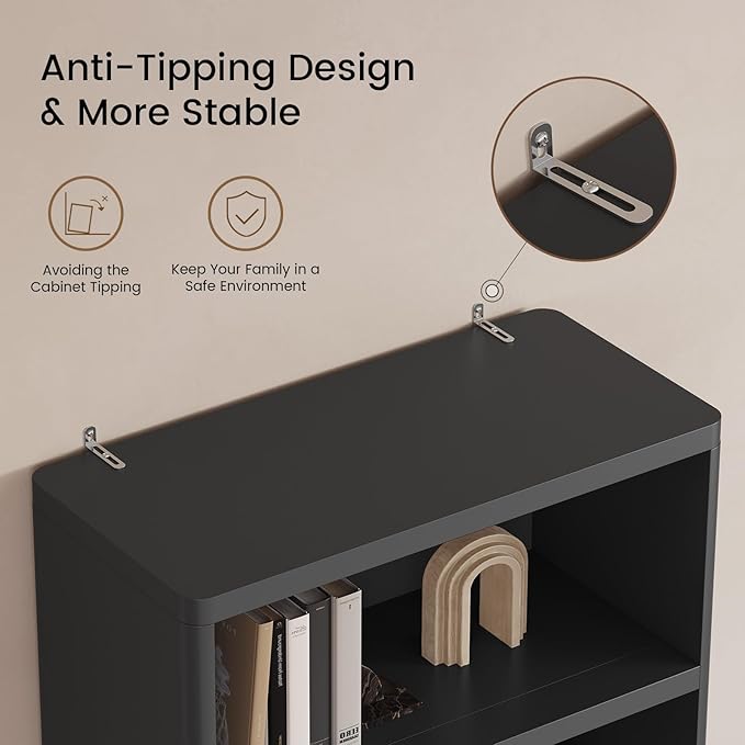 - 【Ultimate Safety】This bookcase is equipped with an anti-tip kit to effectively prevent accidents, especially suitable for homes with children or pets. The non-slip feet on the bottom ensure that the bookcase remains stable even on uneven floors and prevent scratches on the floor surface. This feature makes it a safe and practical choice for any space