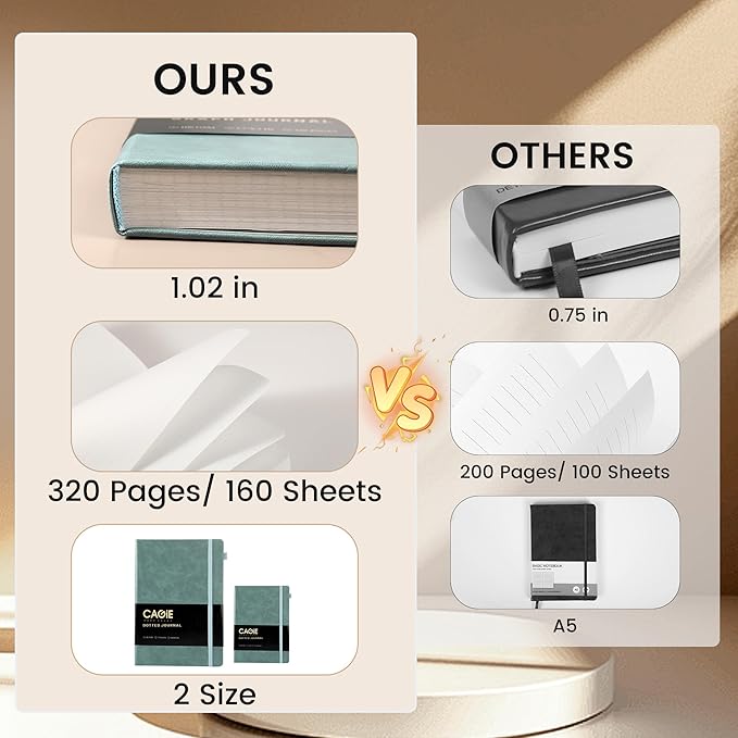 - 320 PAGES PREMIUM PAPER- Crafted from 100 gsm thick acid-free paper, it perfectly captures your thoughts while effectively preventing ink bleed-through. The dot matrix design offers subtle visual cues that maintain page layout and alignment while preserving near-blank-canvas creative freedom