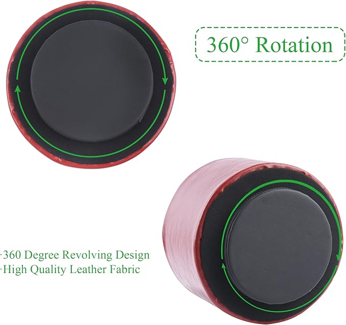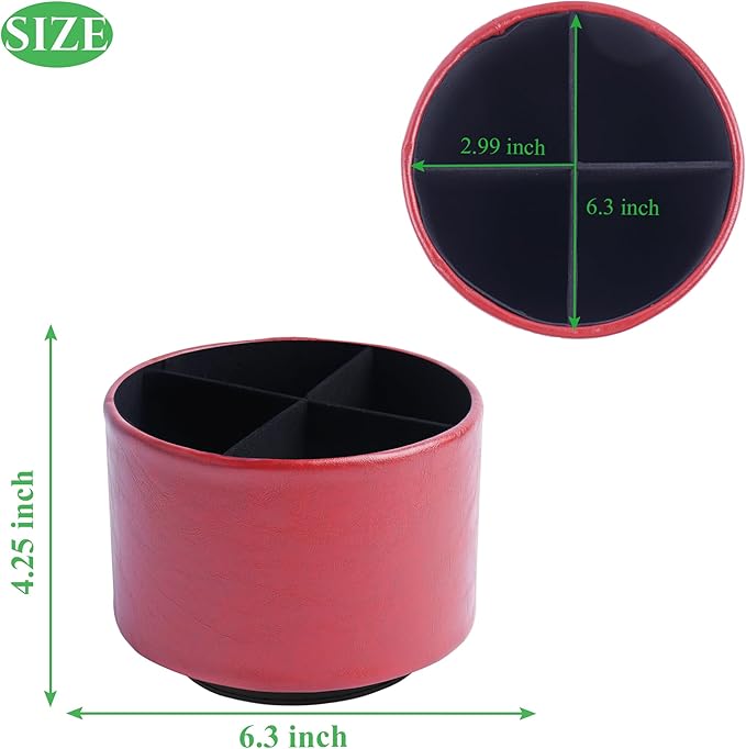 Hennaja Round Leather Art Supply Organizer,Remote Control Holder,360 Degree Spinning,Multi-Functional Pencil Holder,4 Compartments Desktop Stationary Organizer(1-Oil Red)