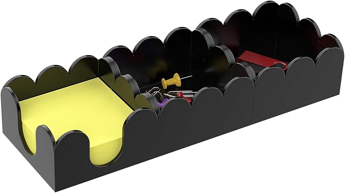 - 【🔹 Black & Durable Acrylic】A clear view of your important notes. Crafted from quality acrylic material, this black sticky note holder is designed to be shatter-resistant and resist scratches. The subtle scalloped edges provide a modern decorative accent that complements a variety of desktop styles.