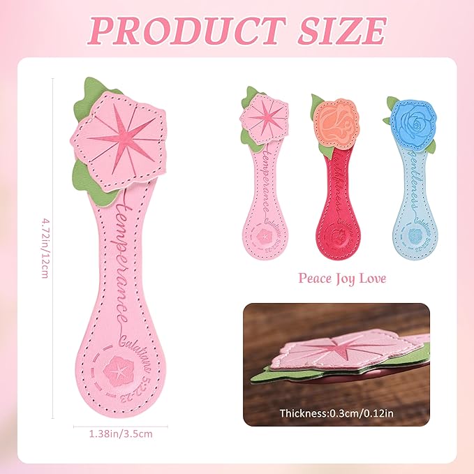 3 PCS Fruit of Spirit Magnetic Leather Bookmarks, Floral Patterns (Faithfulness Gentleness Temperance) of Galatians, Bible-Inspired Page Markers, Gift for Book Lovers, Students, Book Accessories