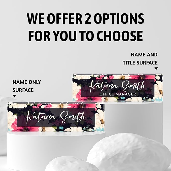 Personalized Name Plate for Desk, Custom Desk Name Plate, Acrylic Name Plate Office Desk Accessories, Personalized Office Gifts for Coworkers Teachers, Employee Appreciation Gifts (C-Dark Floral)